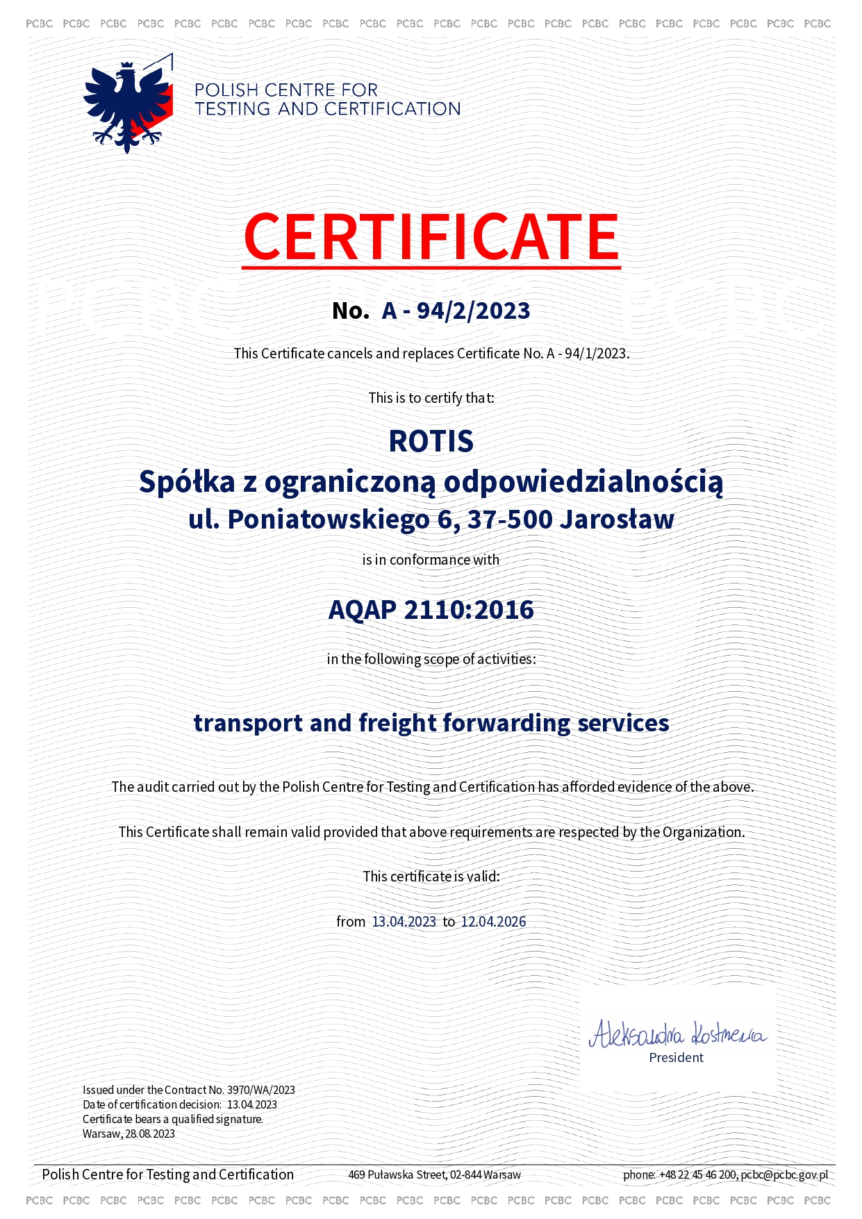 Firma ROTIS Sp. z o. o. organizuje transport towarów w ruchu międzynarodowym i ruchu krajowym.